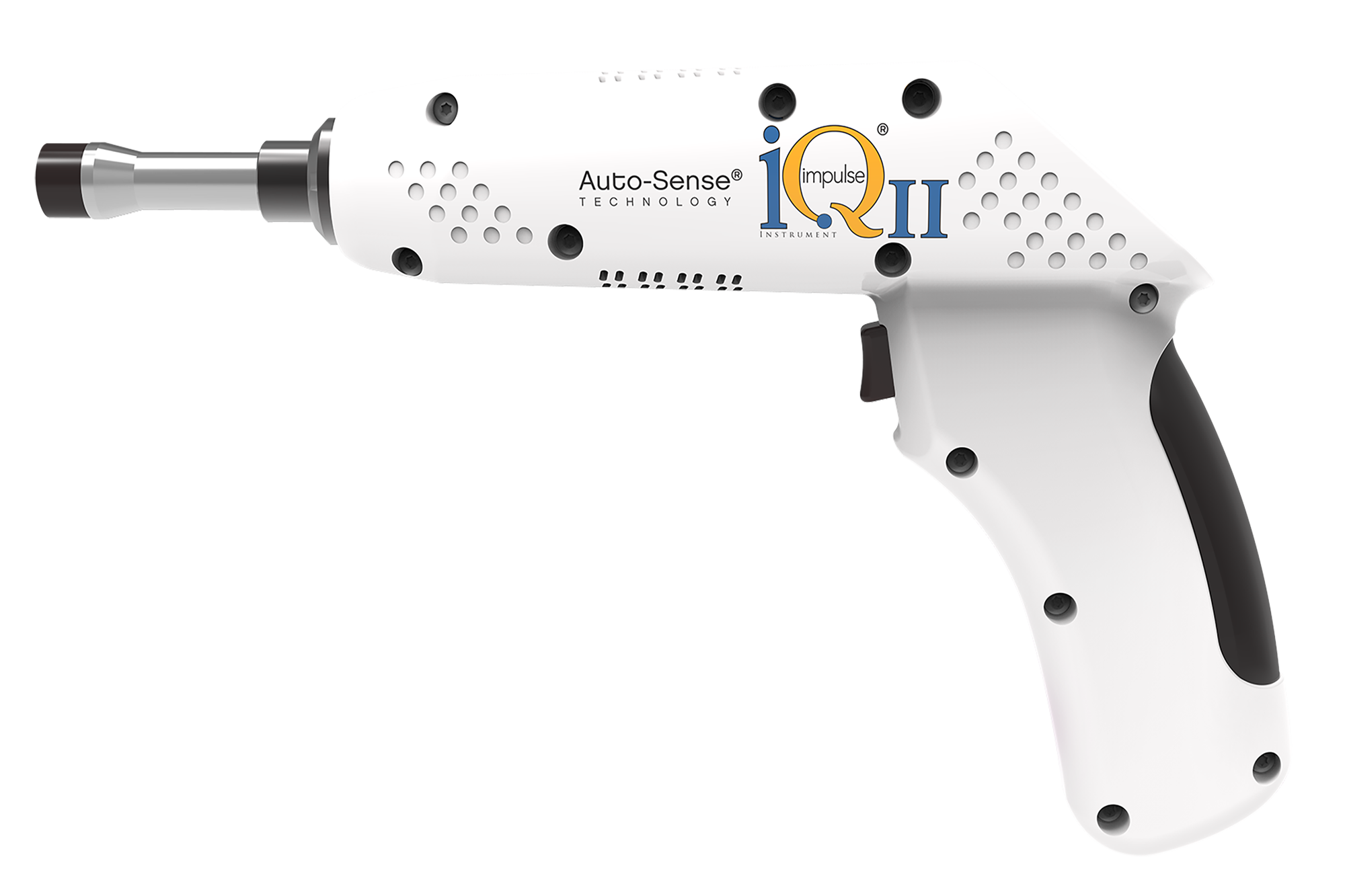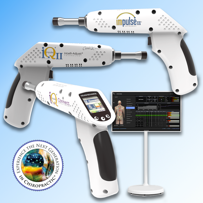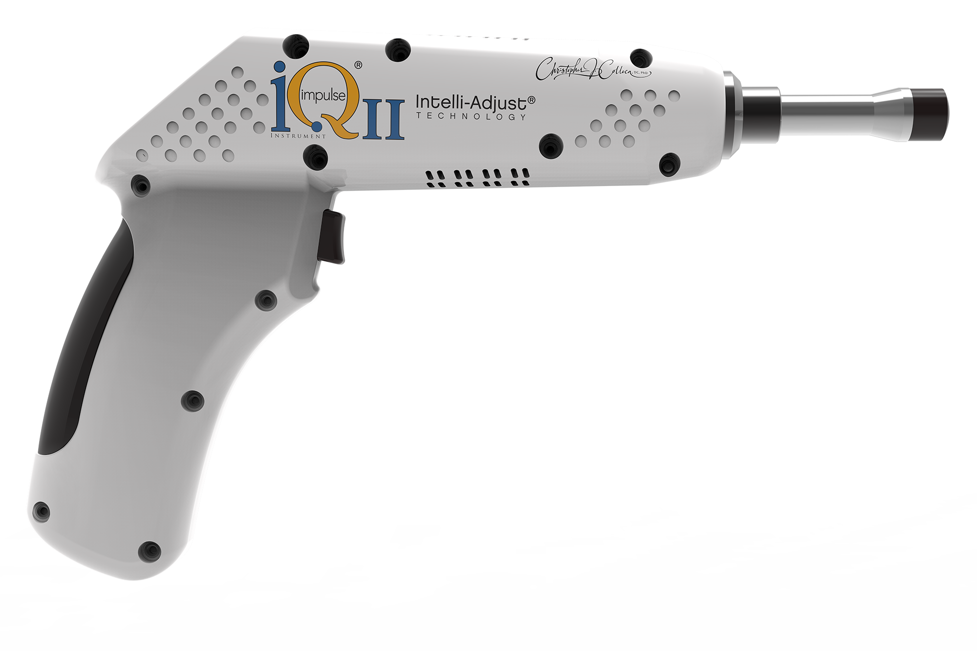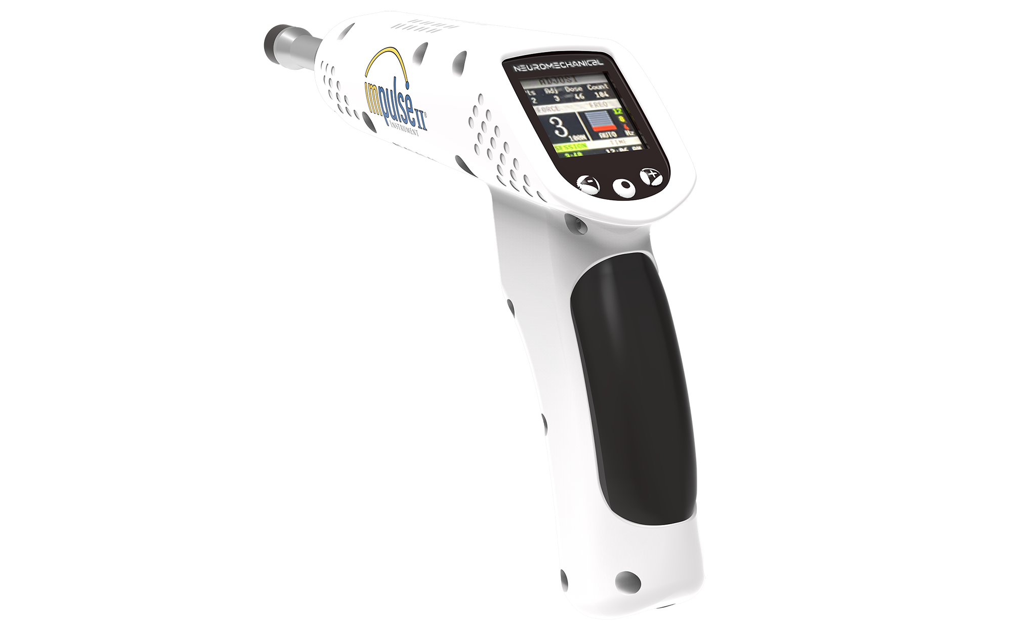 • Impulse IQ II has Neuromechanical Patented Auto-Sense® and Intelli-Adjust® technologies that detect and analyze spinal motion during each thrust. Neuromechanical AI technology recalibrates each subsequent trust to precisely match the speed of the moving joint. Adjust to the frequency® is what we call it – maximizing joint mobility with the least amount of adjusting is what it is!